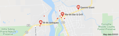 I grew up and now live in Wilmington, Illinois along with about 6,000 other folks. It is called “The Island City” because it is bisected by the Kankakee River. As you can see, Route 66 goes right through Wilmington.