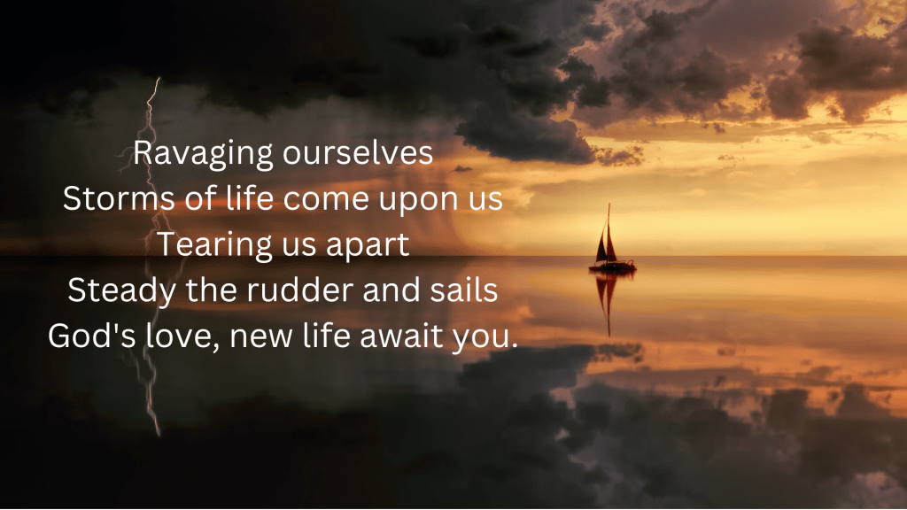 The storms of life can occur in many forms: an unexpected death, a life-threatening diagnosis, or a natural disaster. When any of these events occur, we are often like a ship in a storm with our sails and rudder unused.