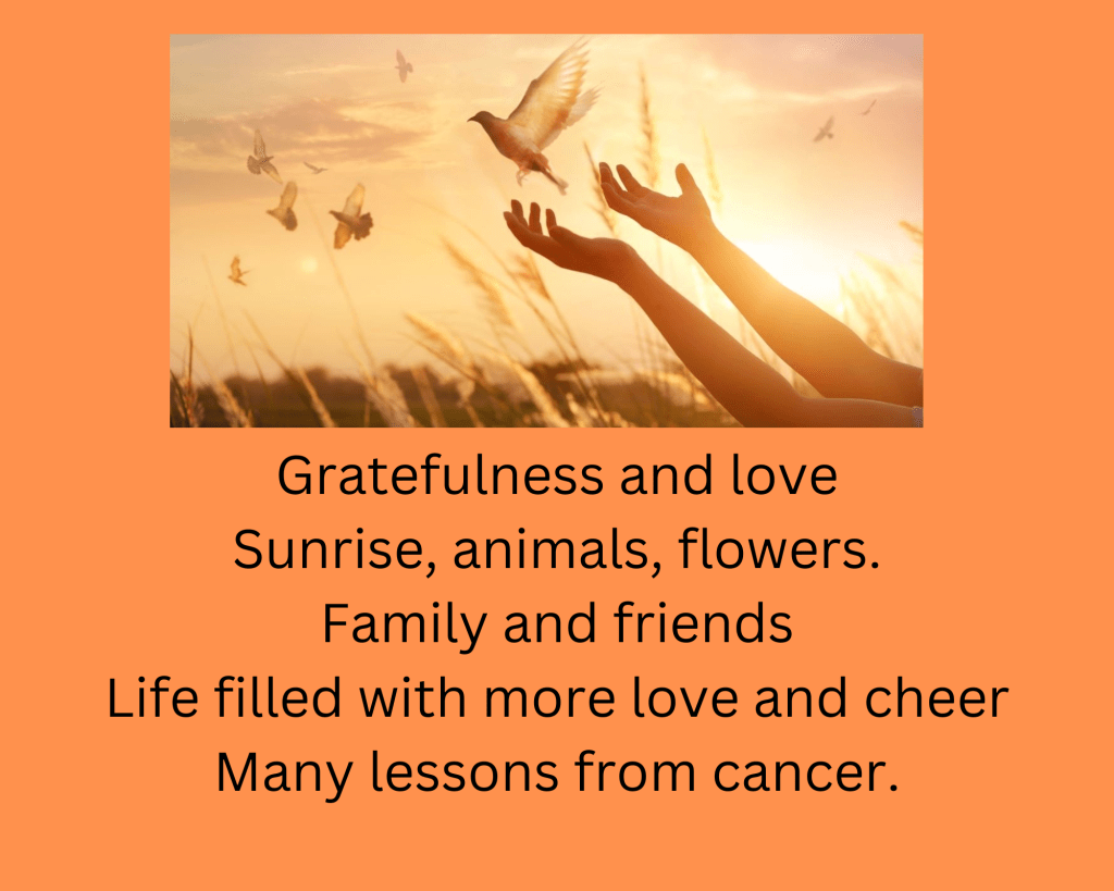 The storm of cancer has been in my life for 14 years, ebbing and flowing with intensity. My lessons are the same: taking good care of my body and living in the moment with love.