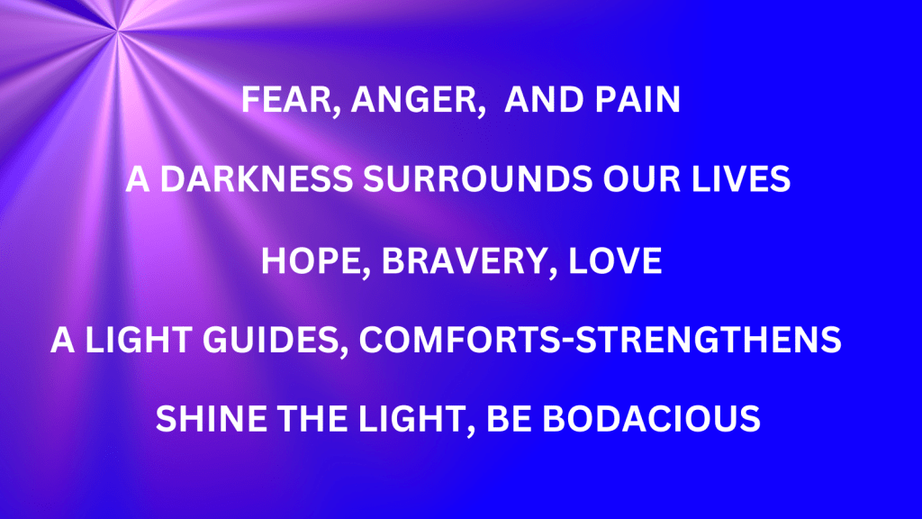 Be bodacious as you walk your path in life. Be brave, awesome, and hopeful. Let’s all shine the light!