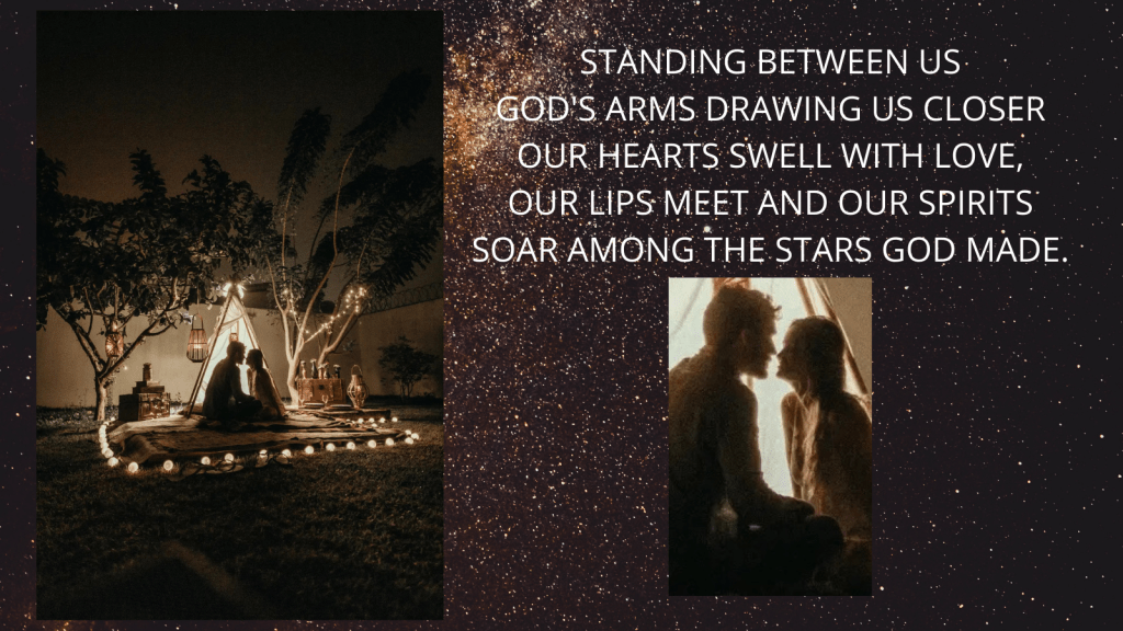 When I met my husband, I felt God’s arms drawing us closer together. When I looked into his eyes, I knew he was someone very special. When I passed by him and touched his shoulder, there was an incredible energy that went through me. We are one and know God is always present.